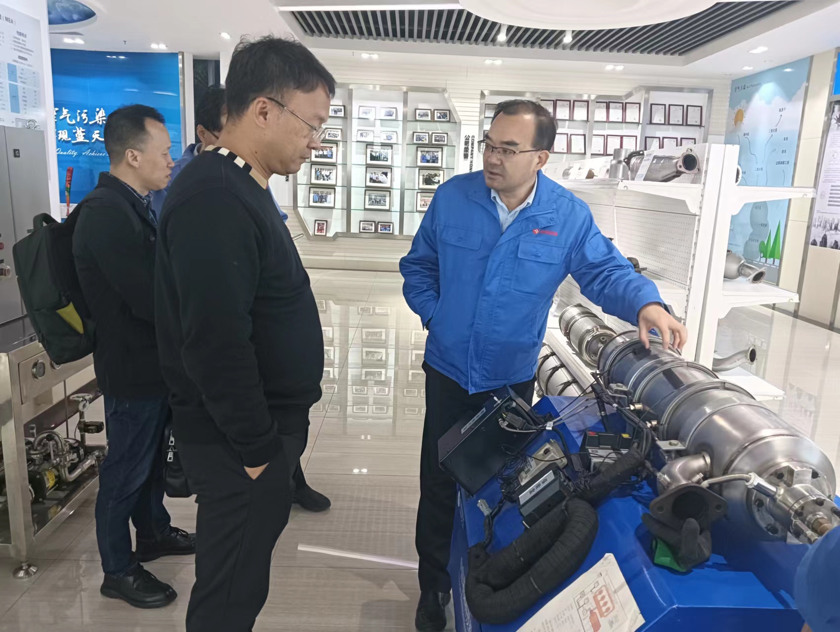 2023年11月29日,董事長章守樸先生拜訪中自環(huán)??萍脊煞萦邢薰?,期間參觀了中自全自動的生產車間,與中自董事長陳總討論了燃氣發(fā)動機尾氣后處理的相關問題,就后續(xù)的合作達成了